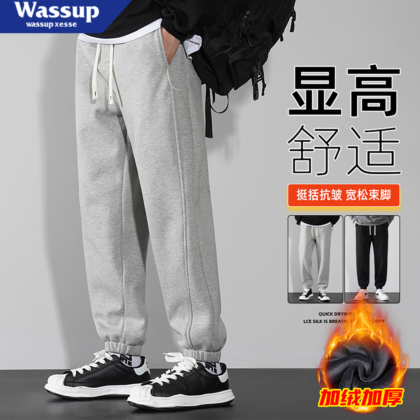 百搭运动裤 WASSUP防风裤 宽松休闲裤 加绒加厚束脚卫裤 子男秋冬新款