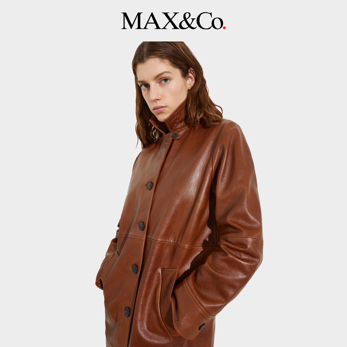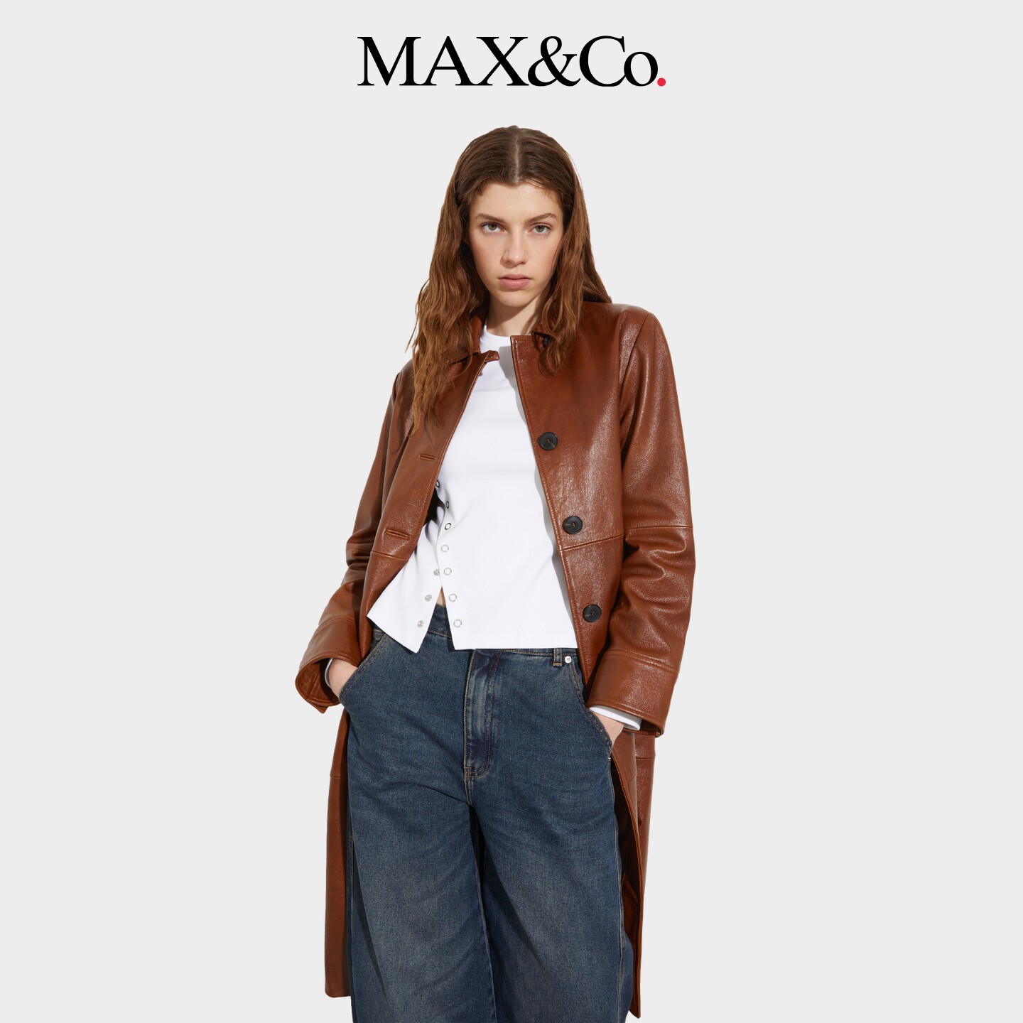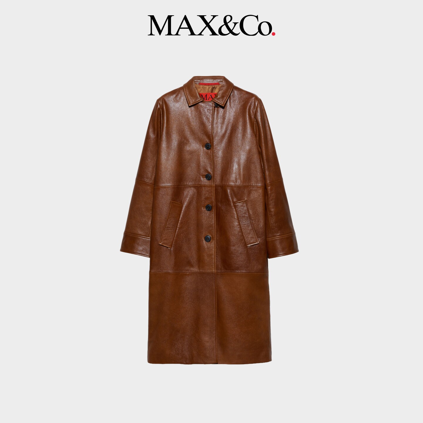 外套6471026102 MAX&Co.简约羊皮革亮面中长款 2026春夏新品