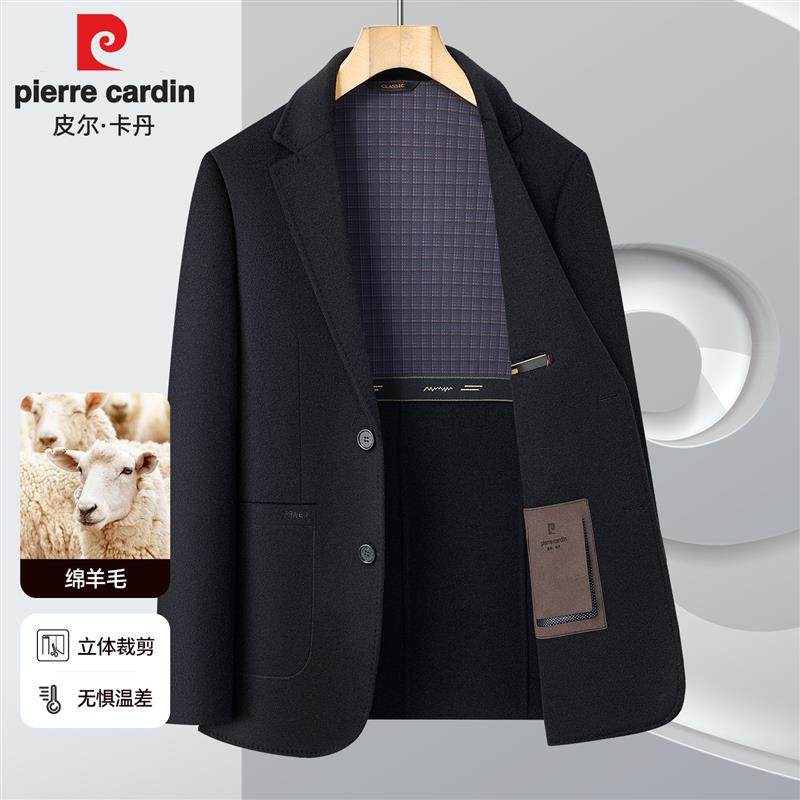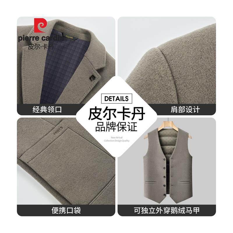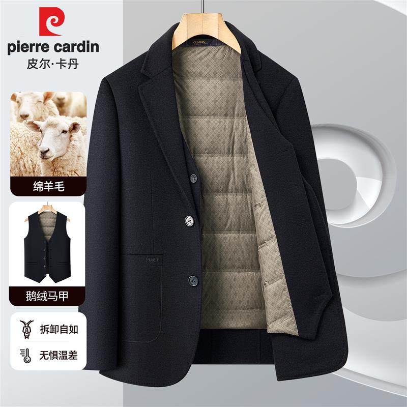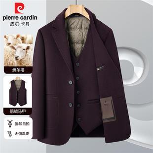 皮尔卡丹秋冬季 男加厚鹅绒马甲羊毛休闲西服外套 高端羊绒毛呢西装