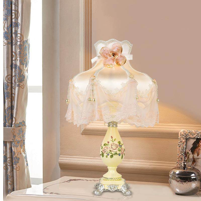美式 简约儿童房公主布艺床头灯别墅客厅创意台灯客房按钮小夜灯