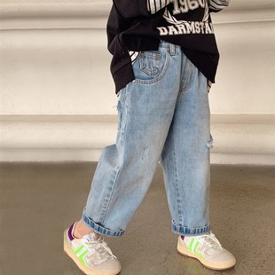 儿童春秋款 新款 裤 子百搭休闲裤 女童破洞牛仔裤 洋派老爹裤 2024春装