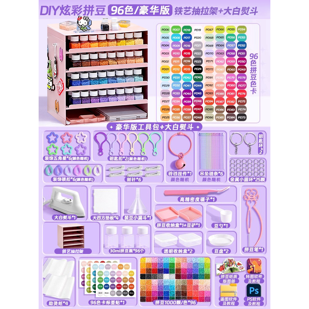 拼豆豆手工diy材料包全套工具立体融合豆女孩网红玩具套装 全色系