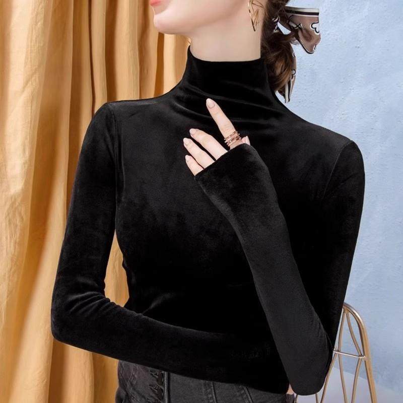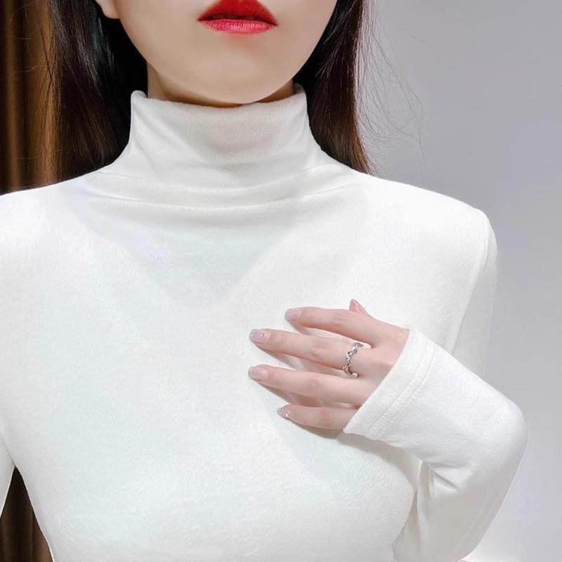 高端羊绒衫 冬 女100纯山羊绒内搭半高领加绒加厚毛衣一体绒打底衫