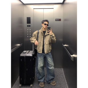 美式 PLTH 宽松工装 麂皮拼接毛毛夹克棉服男冬季 外套 复古立领短款