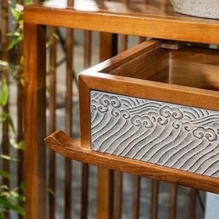 汉韵茶堂示实木置物架客厅室展架摆室件内多功能流水装 饰储物海水