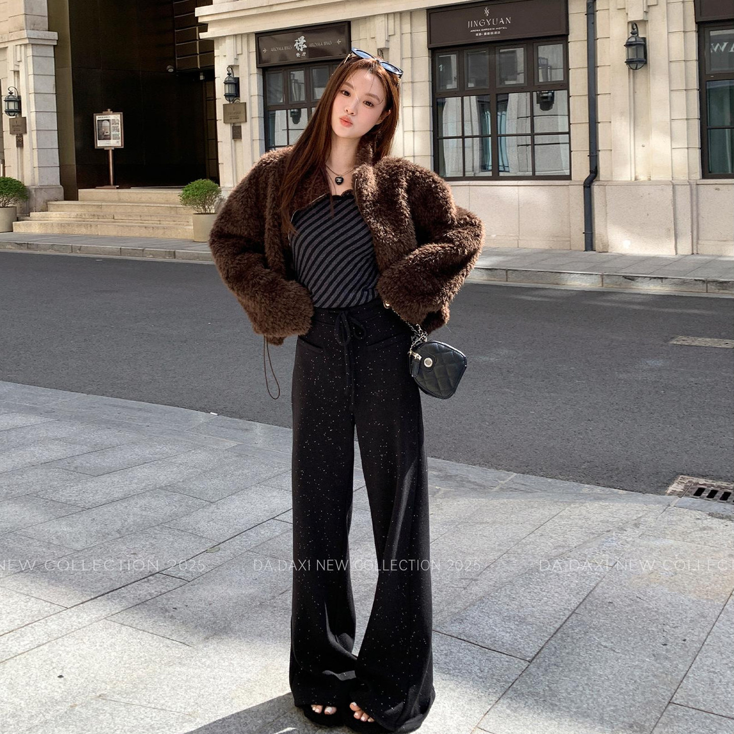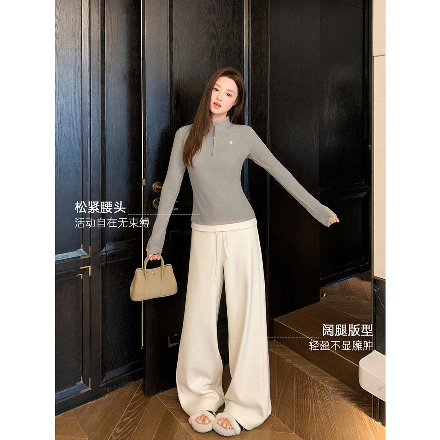外穿无托腹直筒休闲运动长裤 加绒加厚2025新款 子秋冬季 孕妇阔腿裤