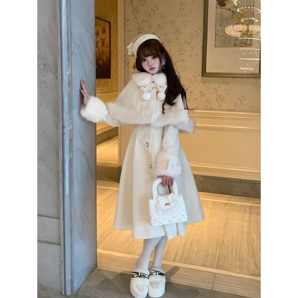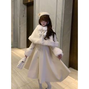 毛呢外套裙两件套 小个子可爱甜妹保暖蝴蝶结斗篷 星野蜜语