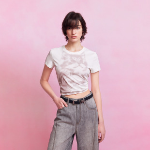 新款 ONLY2026春季 纯棉猫咪印花正肩休闲上衣T恤女 宠物派对