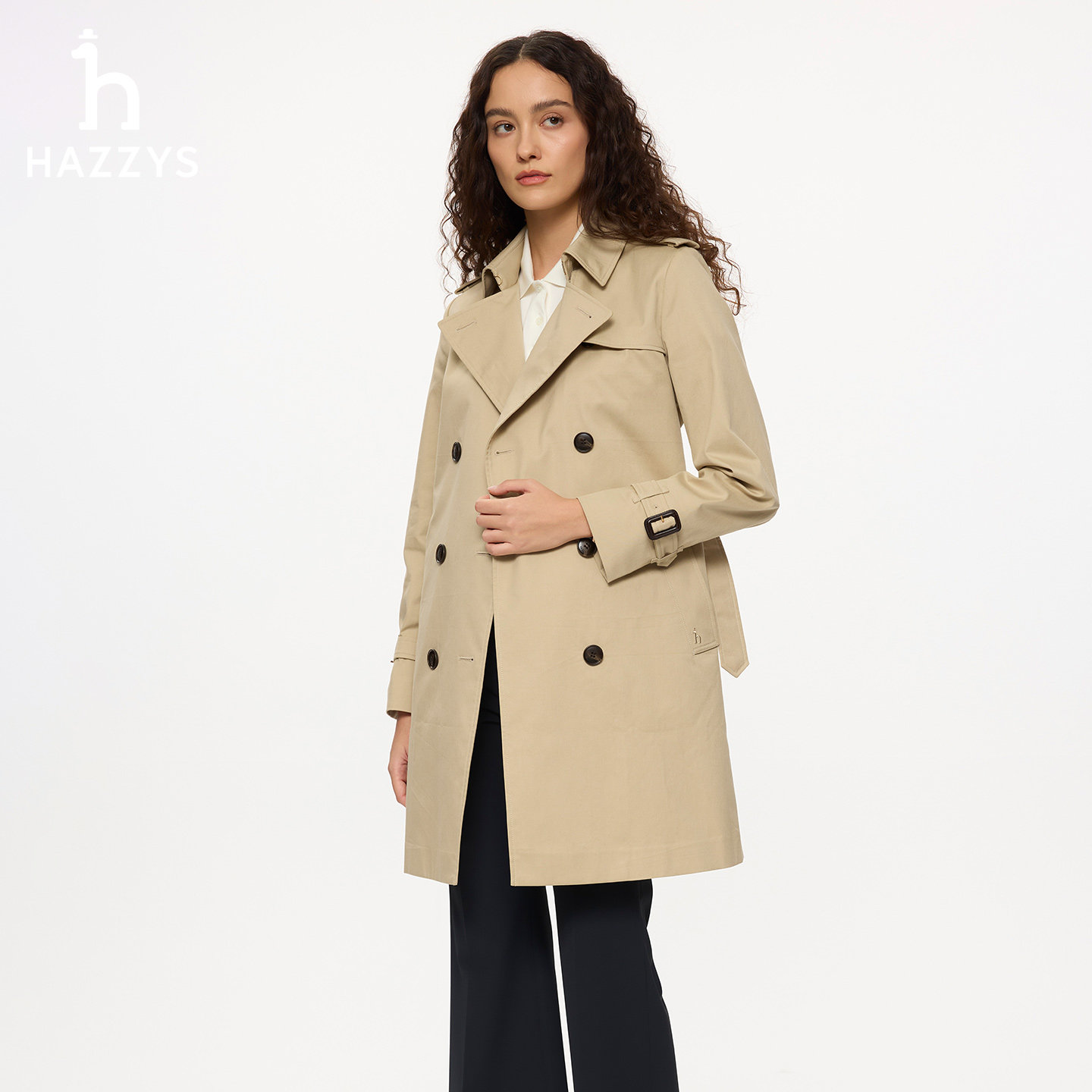 双排扣风衣女2026年春季 中长款 Hazzys哈吉斯经典 上衣 商场同款