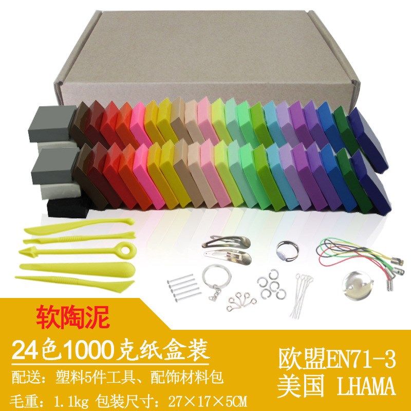 厂家24色1000克套装 工具配件环保CLAY橡皮泥彩陶雕塑软陶泥