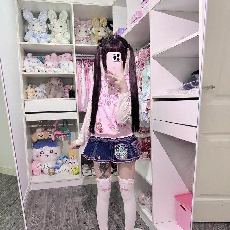 日系原宿甜妹粉卫衣少女感卡通印花花边帽衫 y2k千禧辣妹软妹上衣