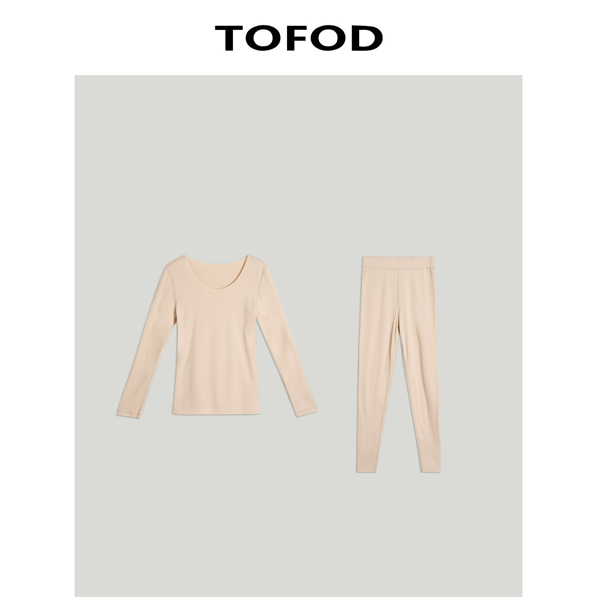 子保暖套装 岛国发热山羊绒圆领上衣裤 带胸垫背心 暖宝宝 TOFOD