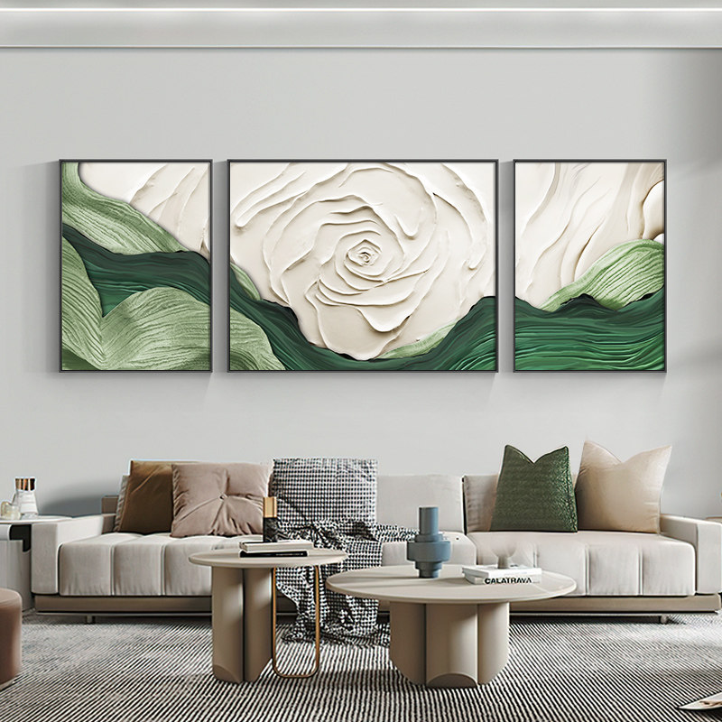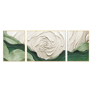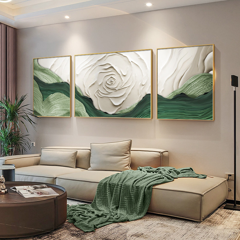 奶油风发财树客厅装 饰画大芬村油画壁画沙发背景墙挂画彩绘三联画