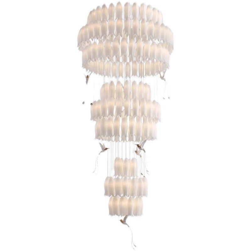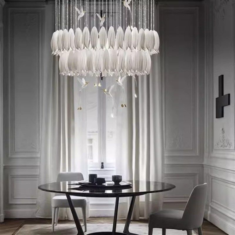 复式 楼轻奢大吊灯楼梯挑空别墅中空定制工程吊灯陶瓷郁金香小鸟灯