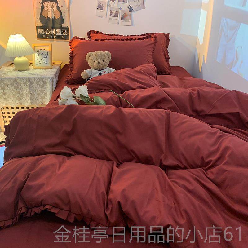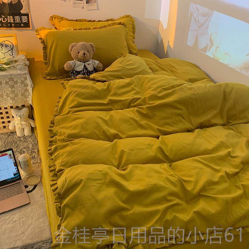 高档宫廷风床单水洗棉被三套学生宿舍床上用品床件套裙床笠1.8件