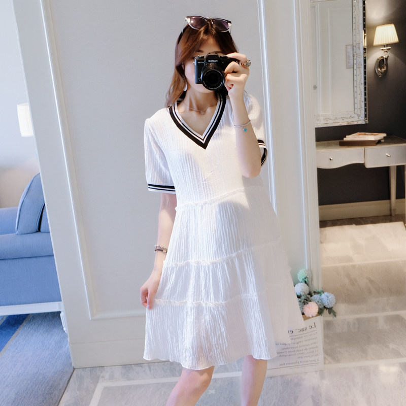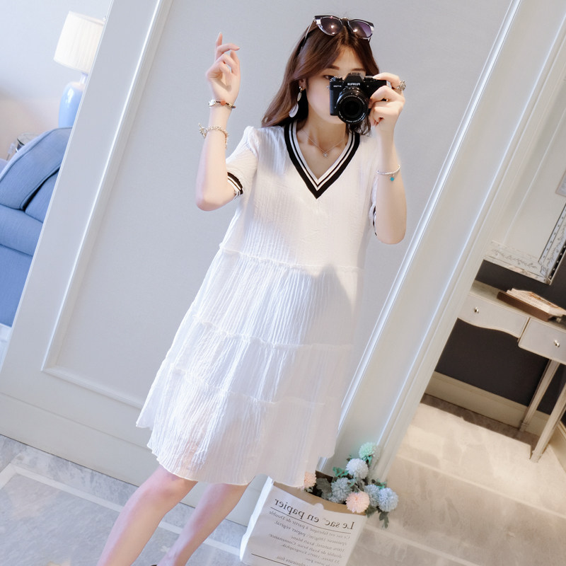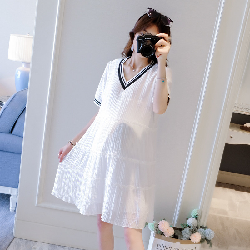 夏天孕妇裙 宽松v领洋气孕妇装 孕妇连衣裙小清新超仙孕妈潮装 韩版