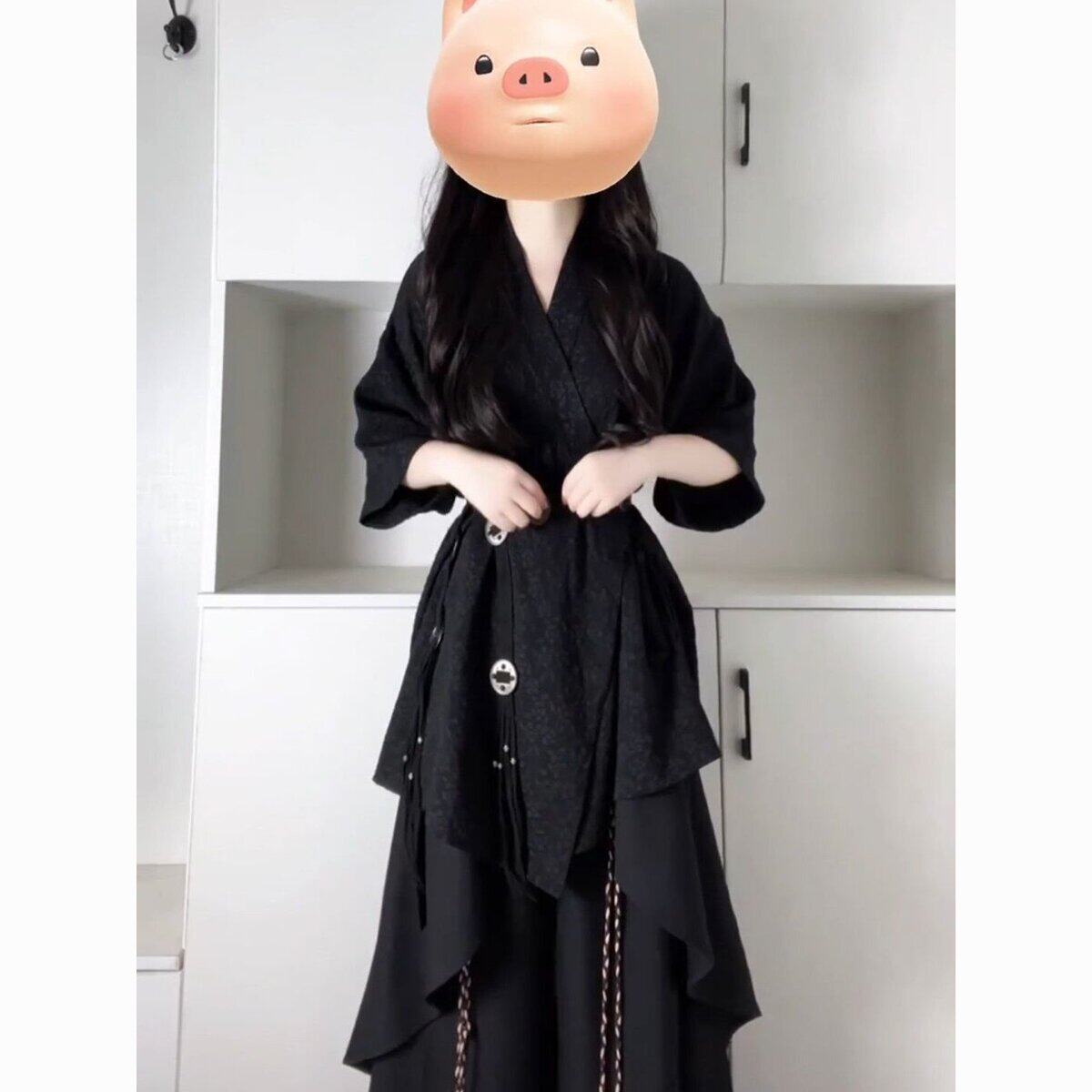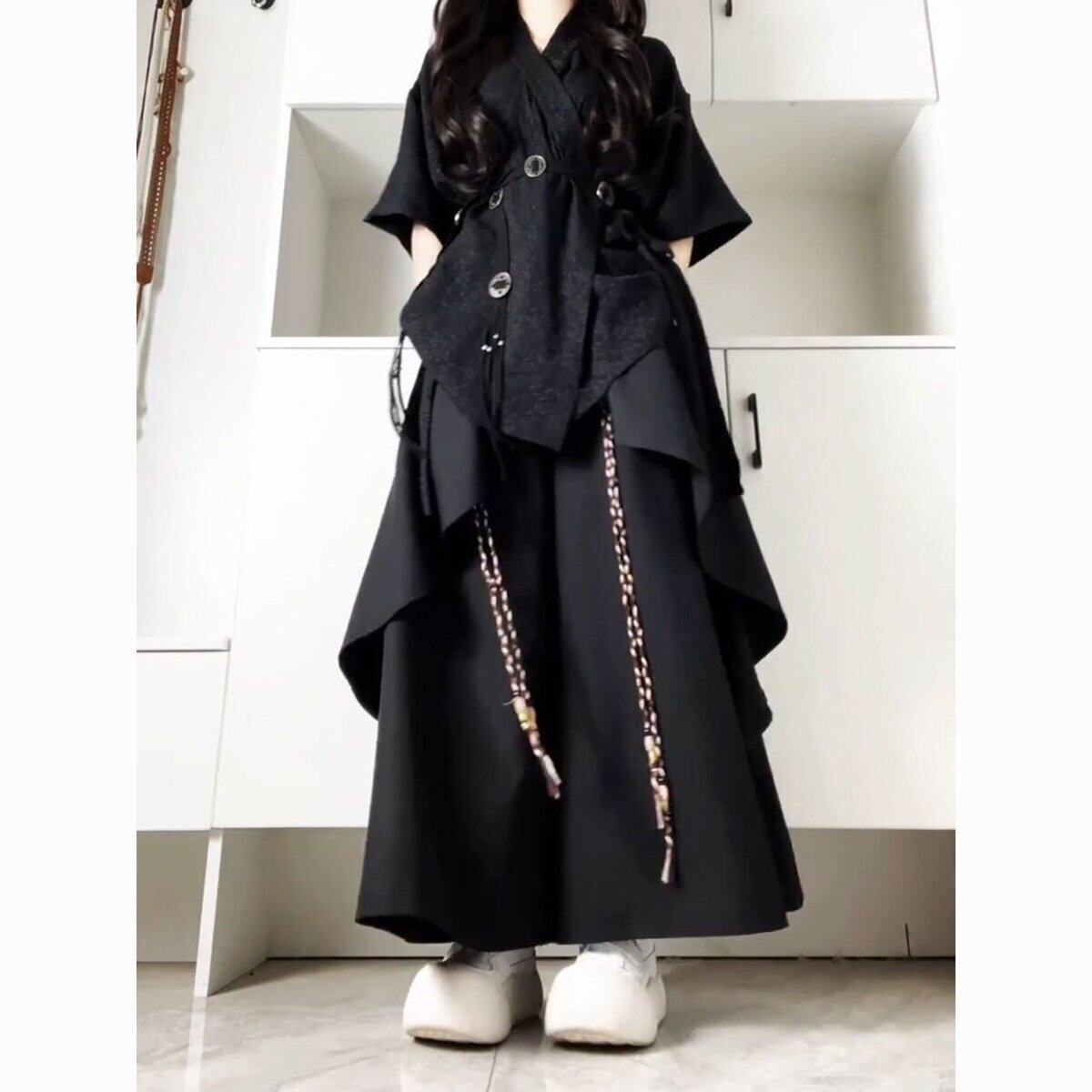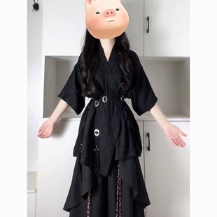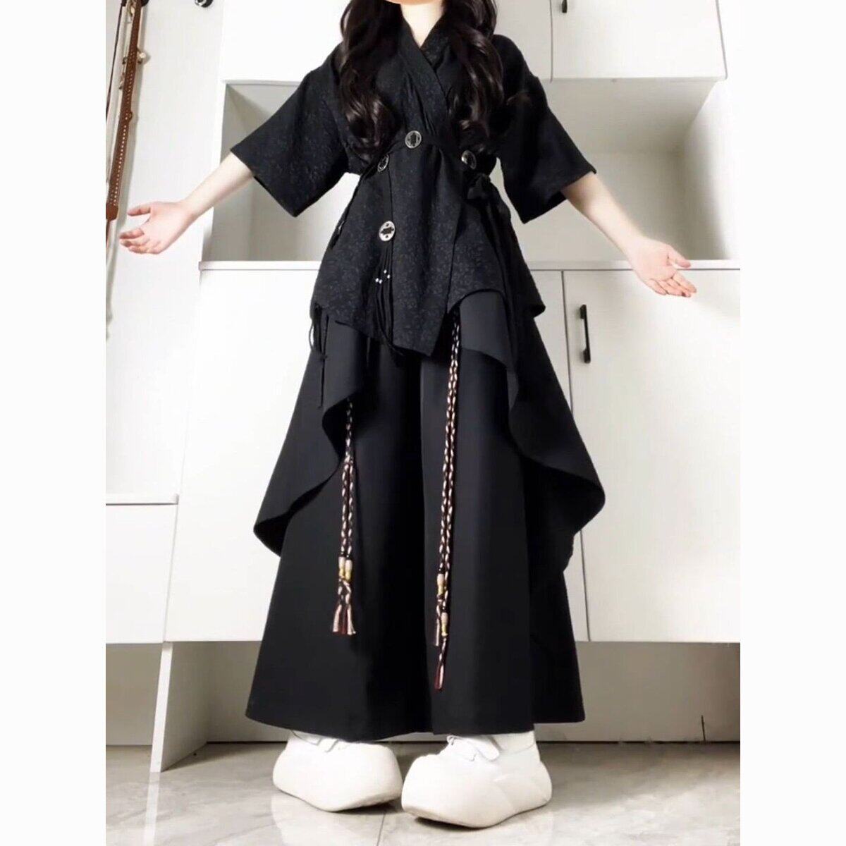 穿搭套装 拼接阔腿休闲裤 夏季 复古小众衬衫 两件套 女中式 又酷又飒