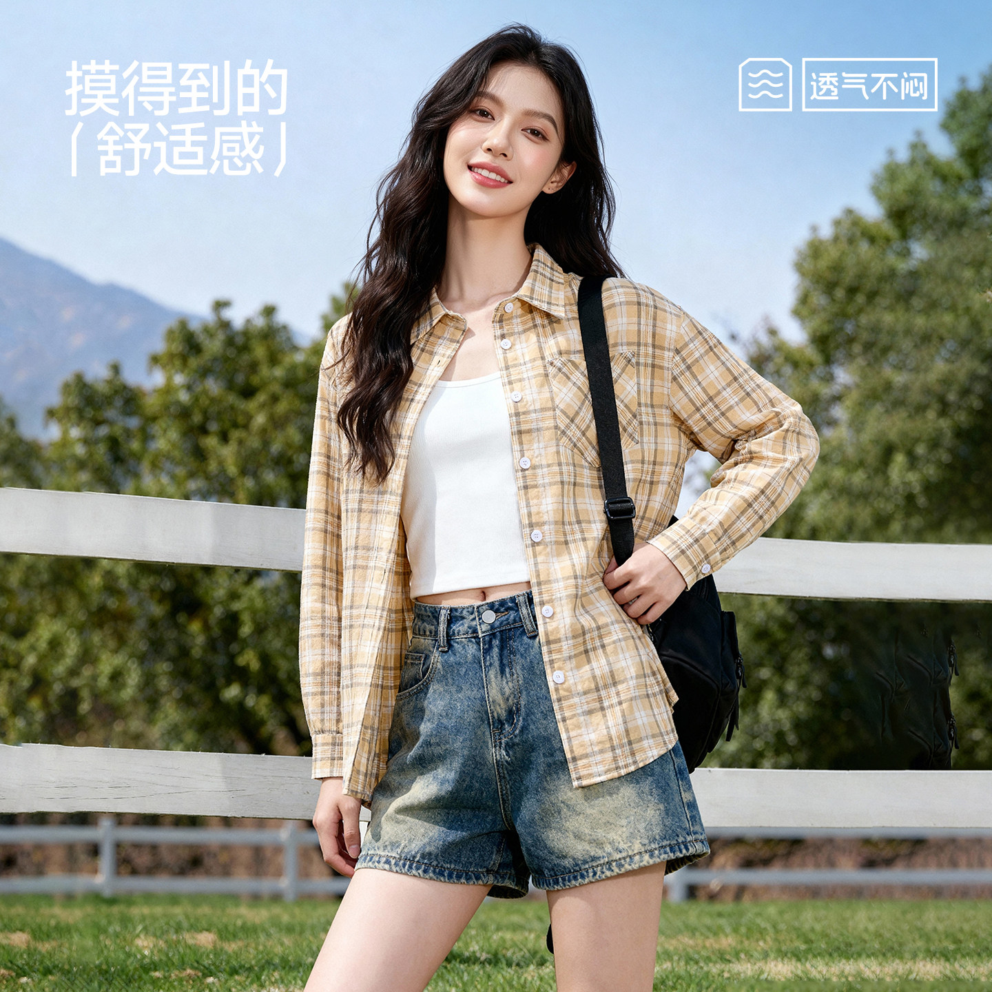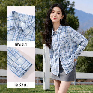 新款 2026春季 慵懒风松弛感宽松衬衣外套Q 女款 班尼路复古格子衬衫