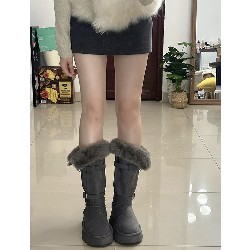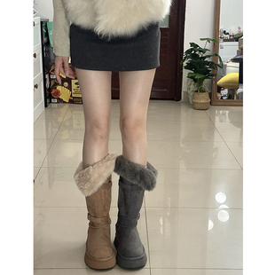 室内家居毛绒高帮软棉拖鞋 雪地靴防滑女棉鞋 保暖加绒加厚时尚 冬季