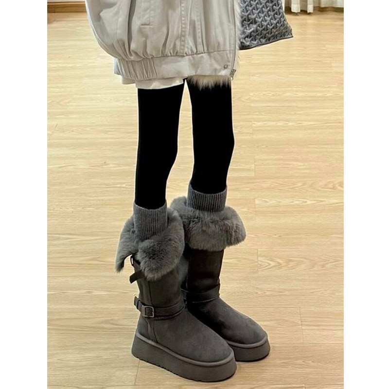 网红增高厚底保暖加绒外穿时尚 女冬季 雪地靴短靴 防水棉鞋 细细条