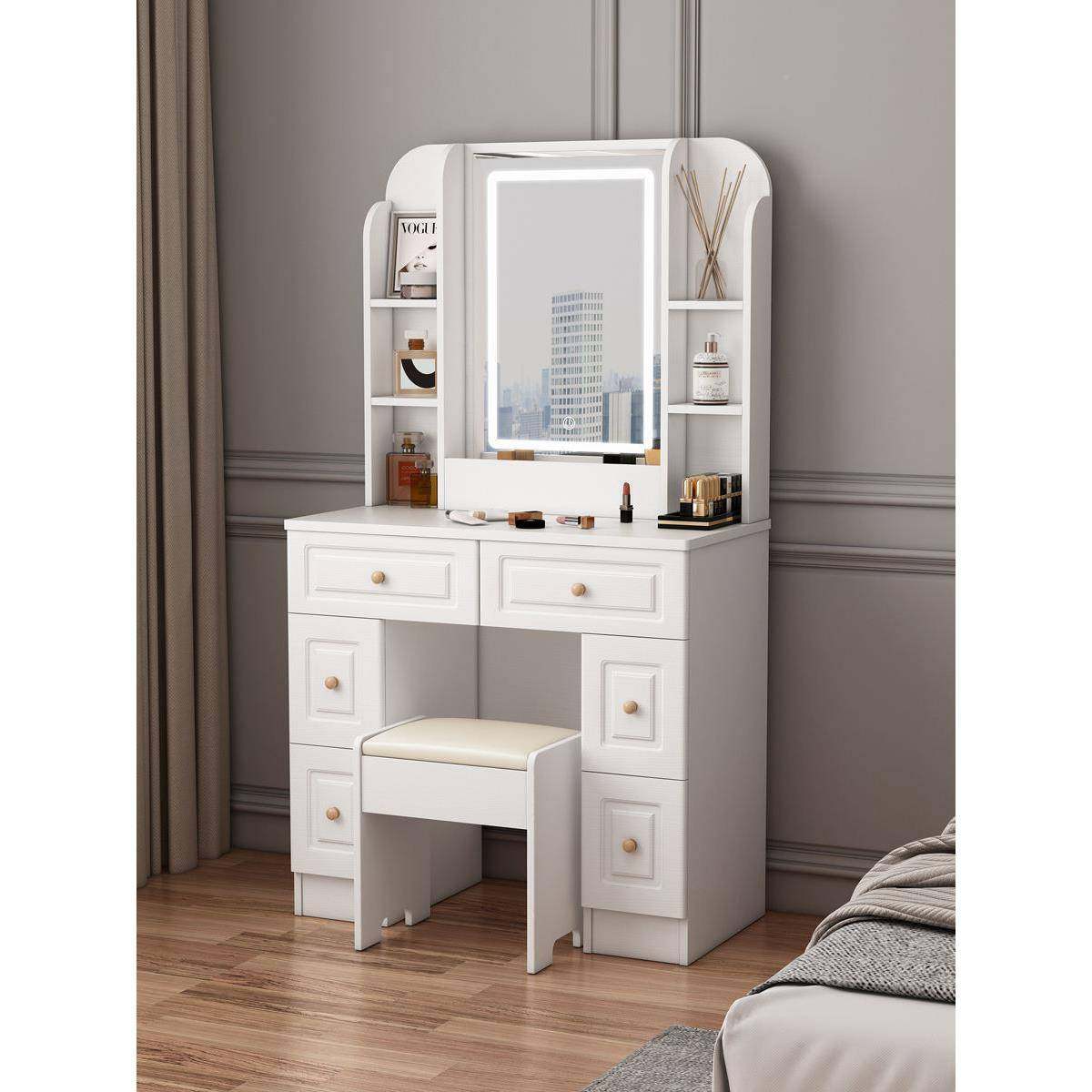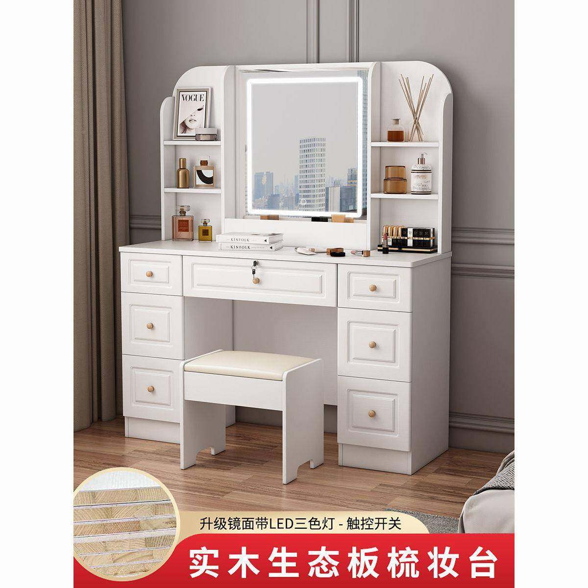 实IFY木梳储妆台卧室简约现代小型大容量妆物柜轻化桌奢触摸灯化