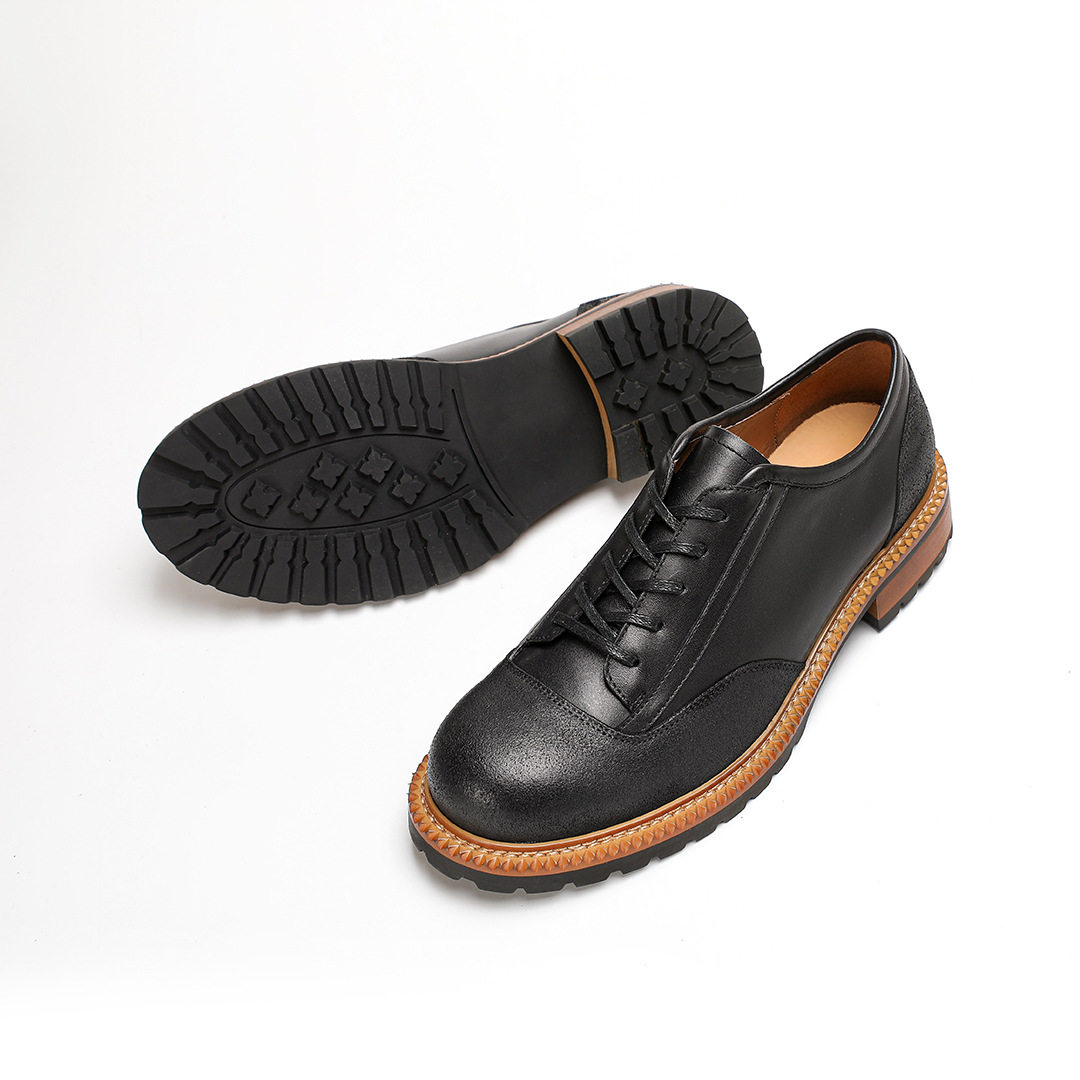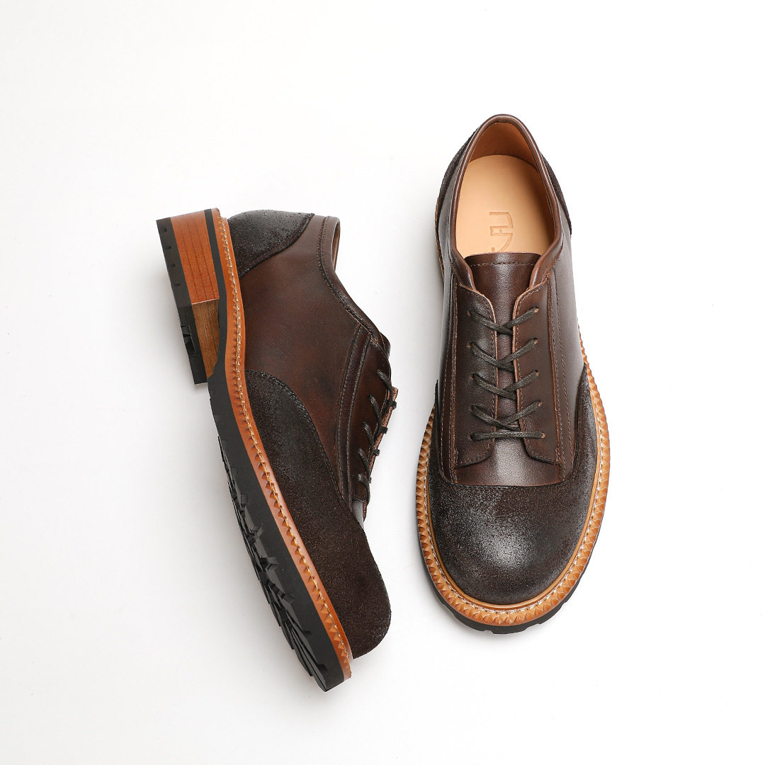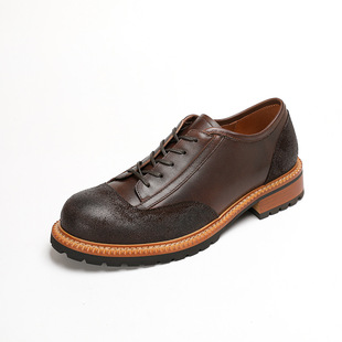 工装 复古风德比鞋 低帮大头皮鞋 翻毛牛皮手工款 男式 弓长梦2026春款