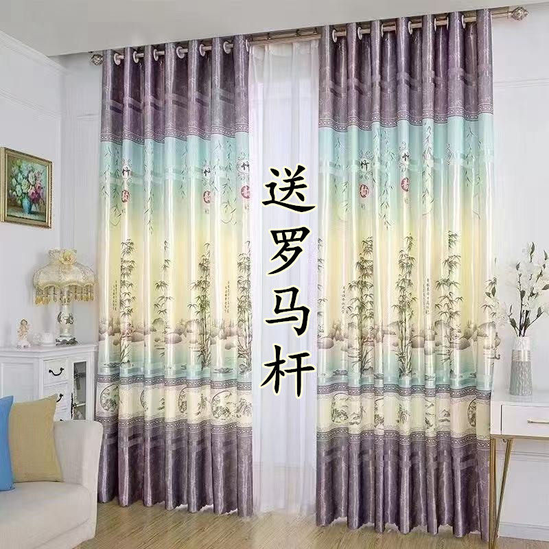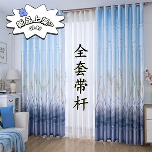 竹子 落地窗帘客厅卧室书房窗帘出租房隔断帘极简风格 全套送杆