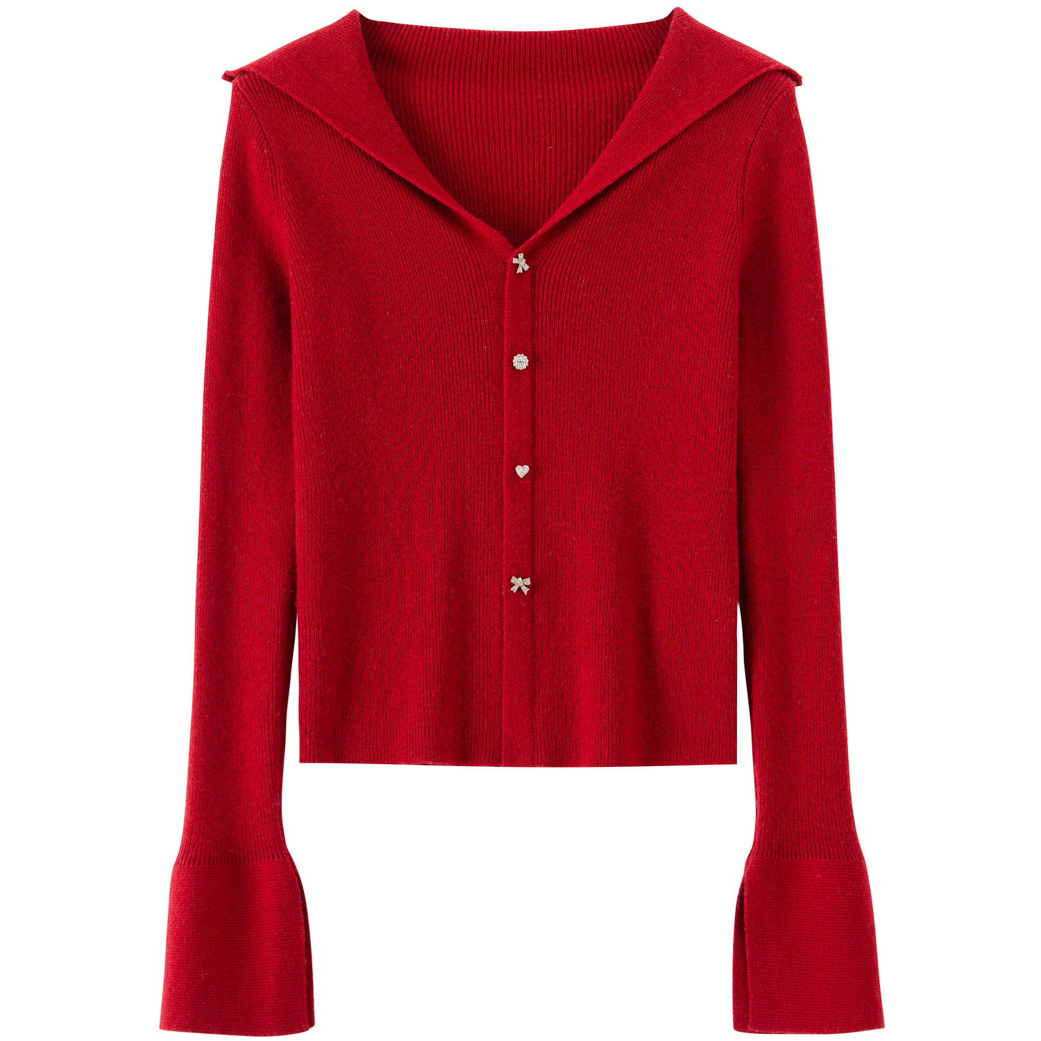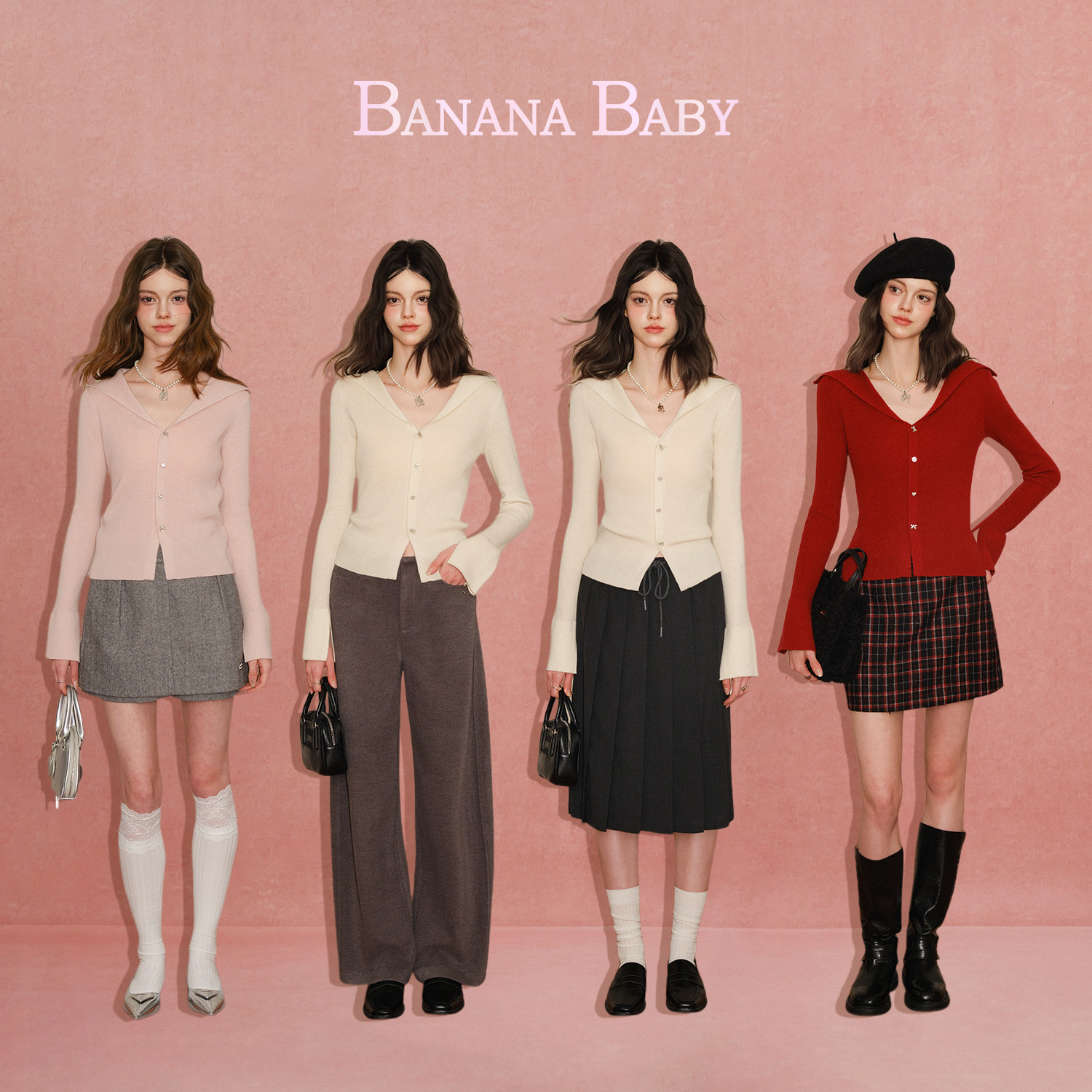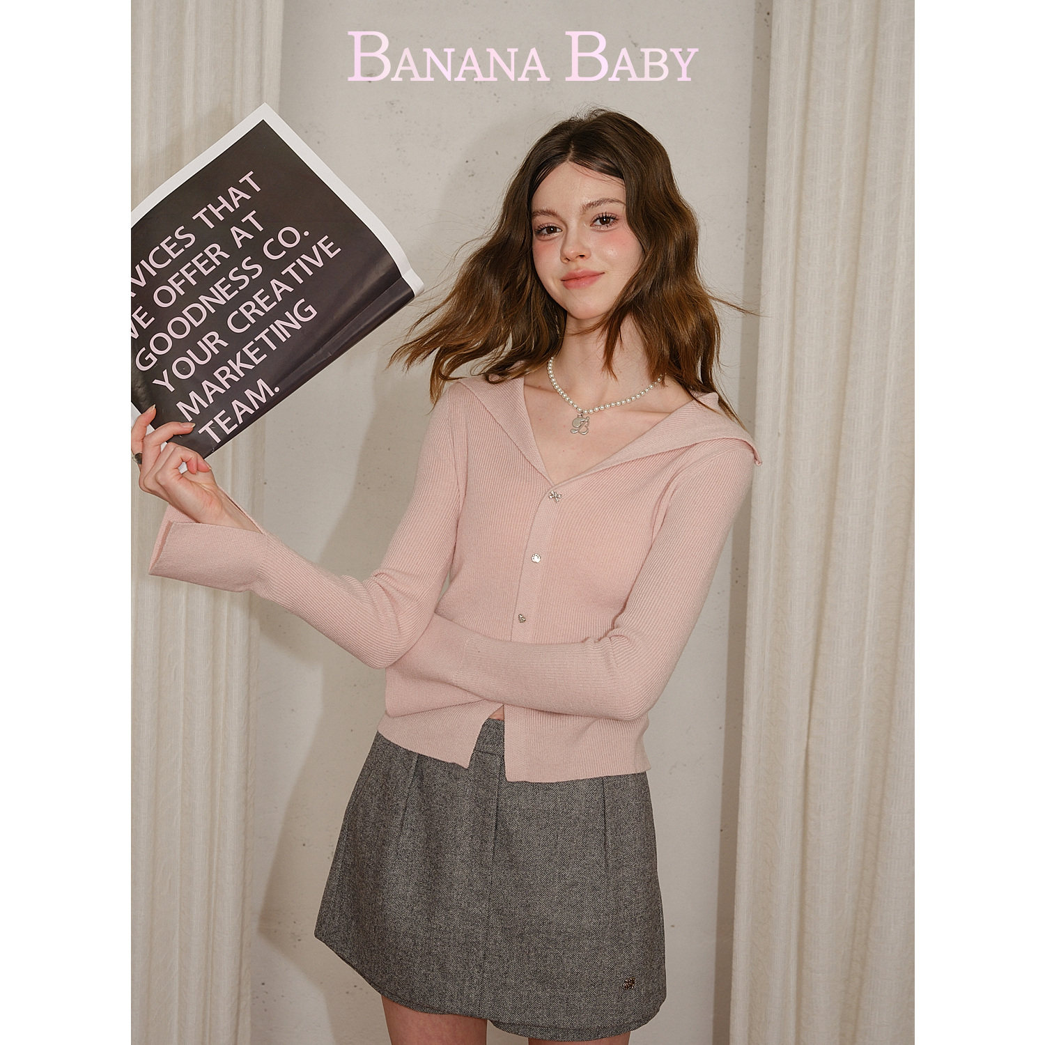 BABY2026年春新款 BANANA 法式 翻领喇叭袖 毛衣女 针织衫 绵羊毛