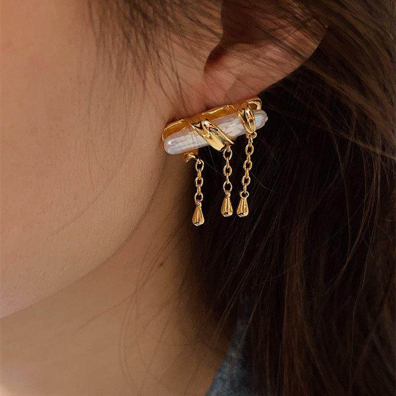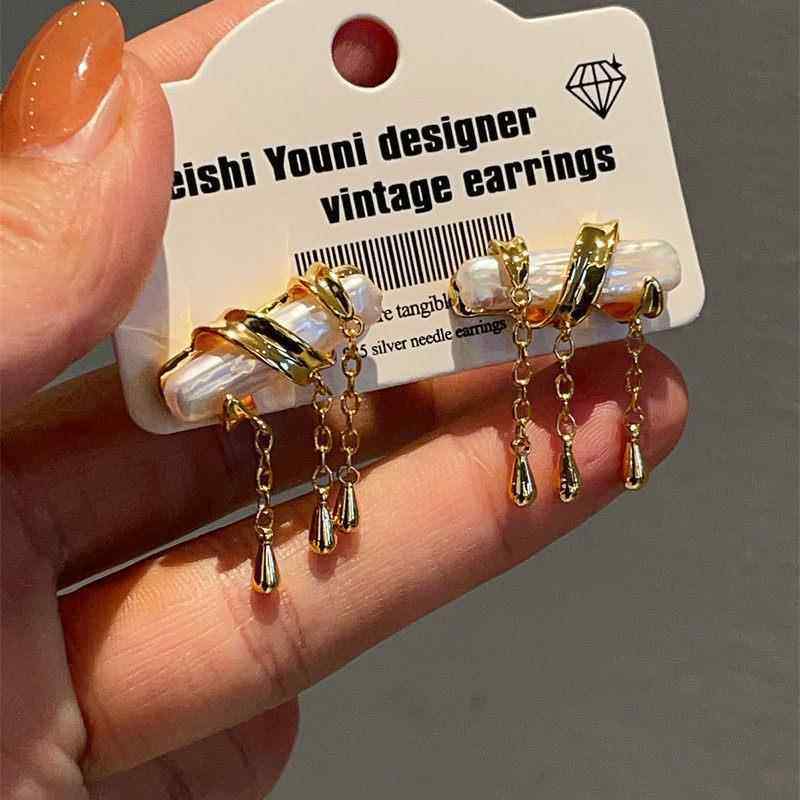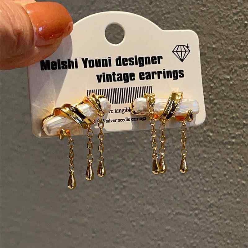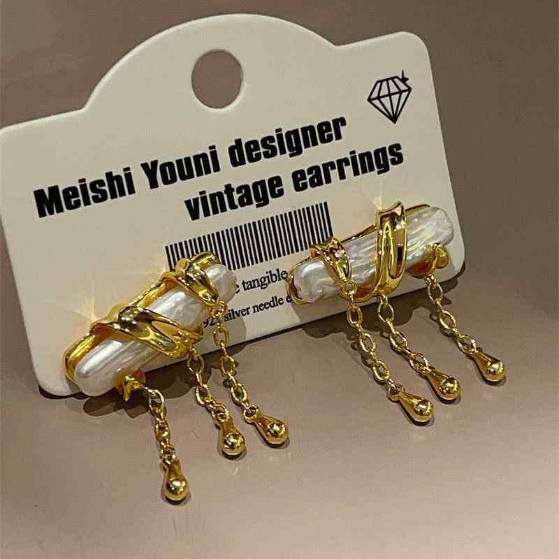French Retro Natural 925 Pearl Needle Baroque Earring Silver