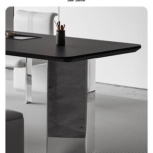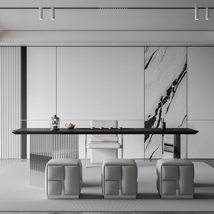 轻奢茶桌椅组合现代简约家用办公室茶台意式 别墅岩板茶盘茶桌一体