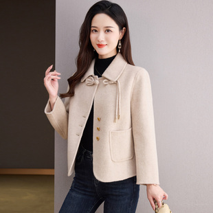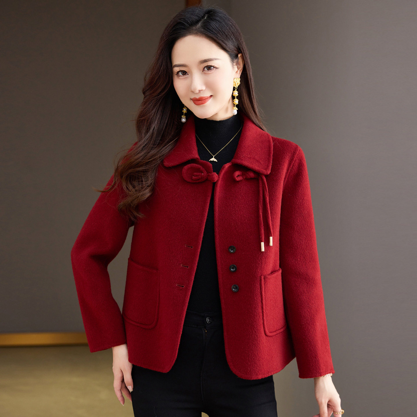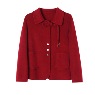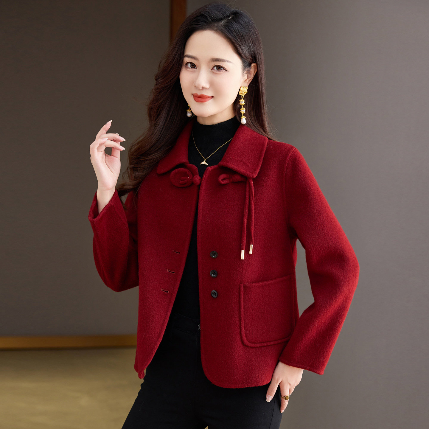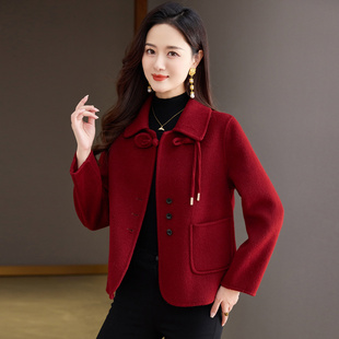 春秋冬季 双面呢羊绒大衣女2026新款 羊毛呢外套 中年妈妈装 红色短款