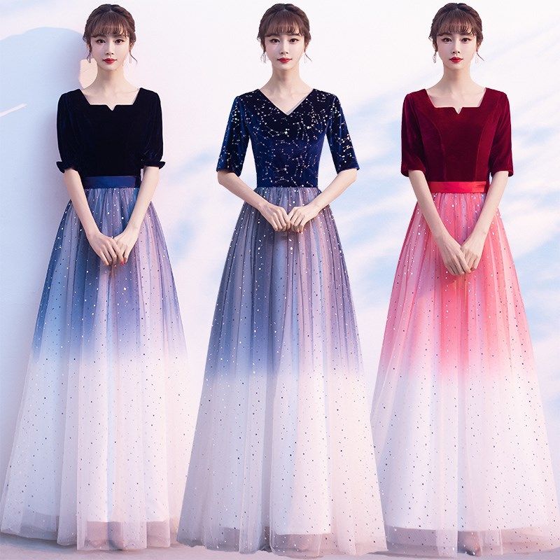 优选大合唱演出服女长裙新u款 成人礼 主持人中学生合唱团艺考长款