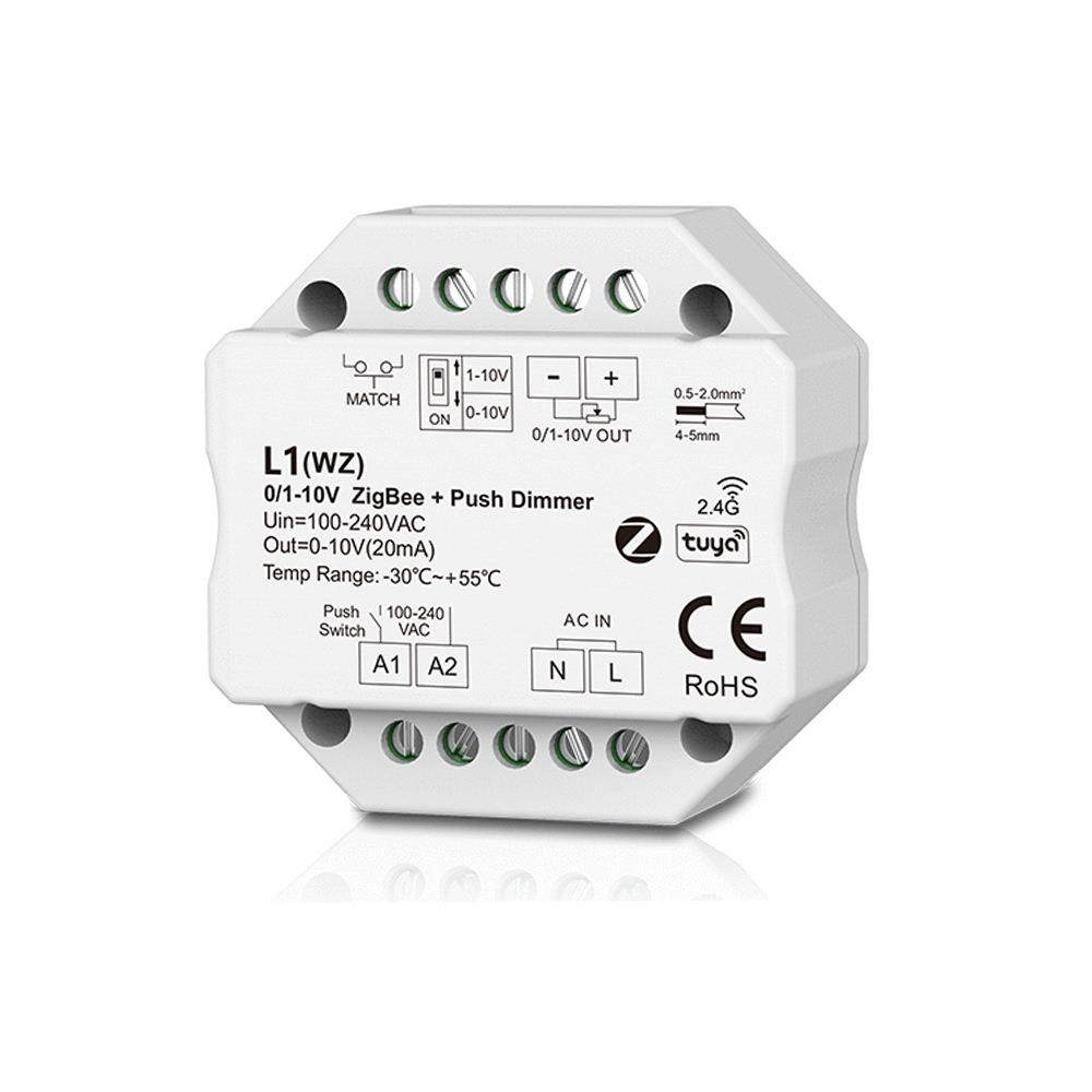 10V调光器L1 ZigBee PUSH2.4GRF遥控或AC⾃复位开关调光0
