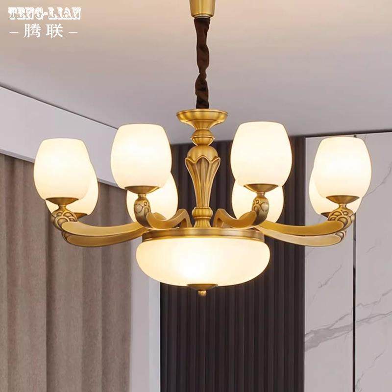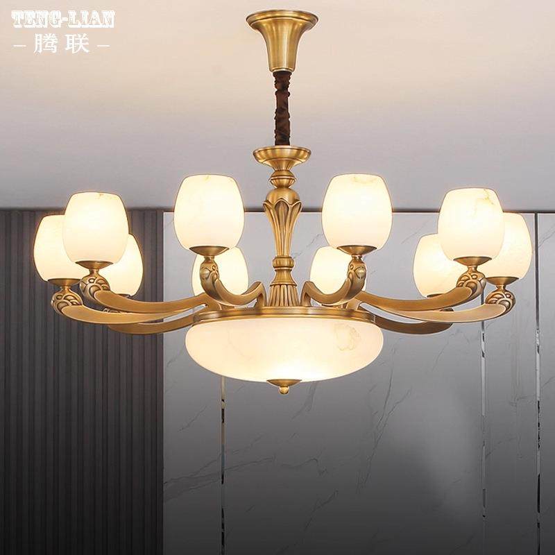 QNS云石 灯古复楼大厅餐厅卧室简灯约欧式 美式 别墅全铜吊复客厅式