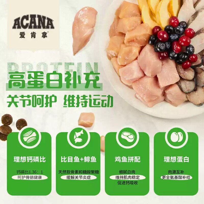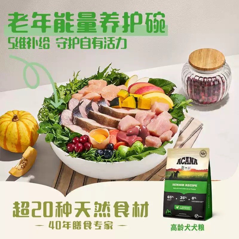 ACANA爱肯拿老年犬高龄犬狗抗衰老进口无谷鸡肉老狗粮6KG 百补