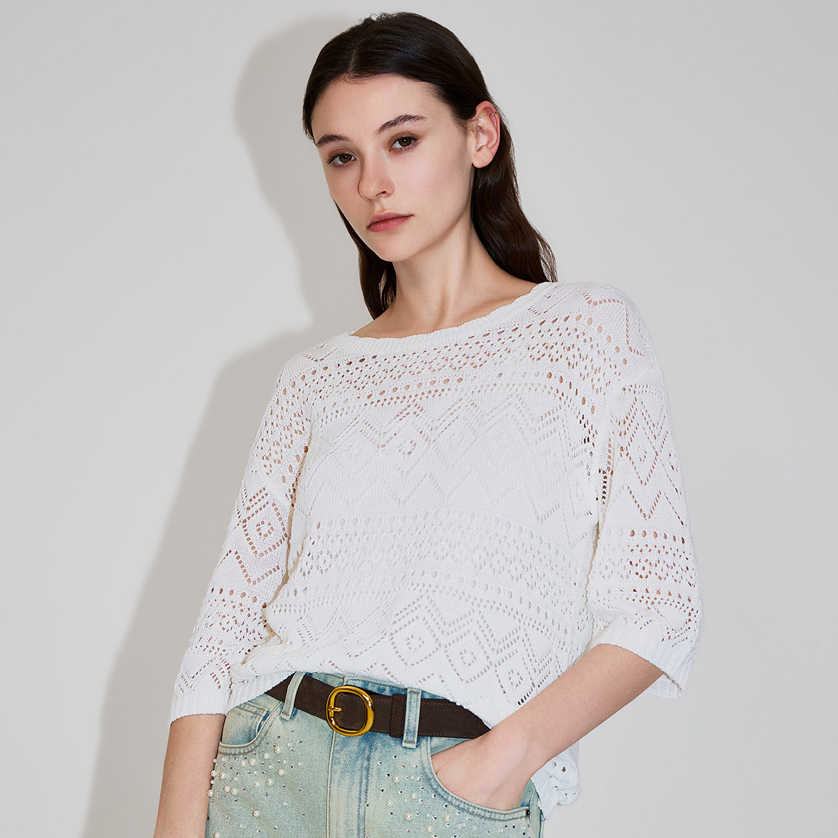 针织衫 镂空中袖 OCHIRLY欧时力 女上衣设计感防晒2026春夏 新品