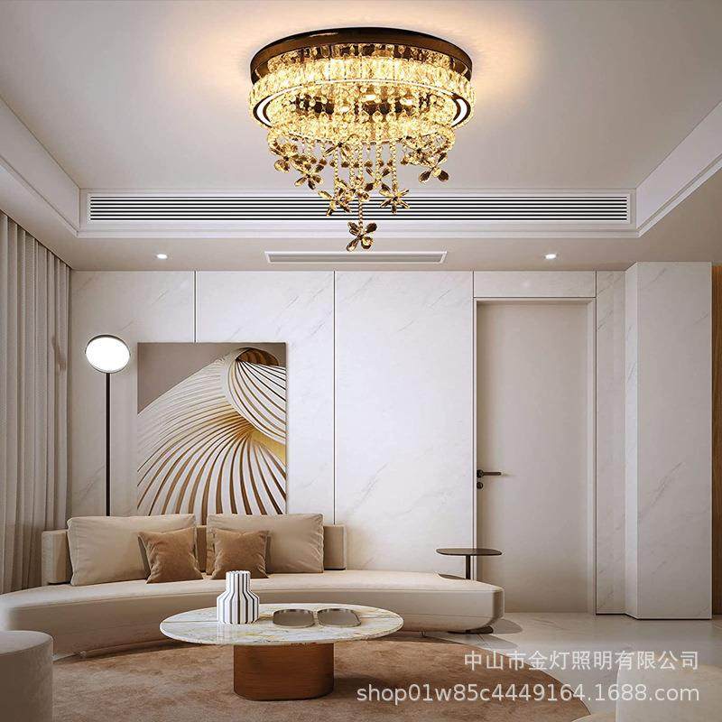 客厅吸顶灯轻奢后现代别墅高档大气圆形花瓣主卧室灯具大厅水晶灯