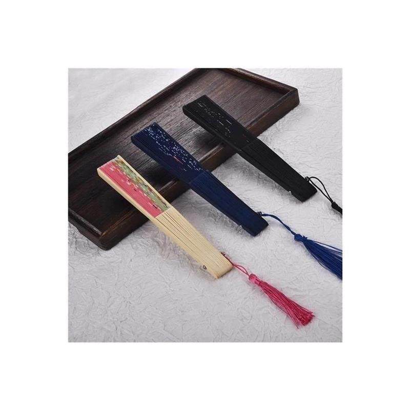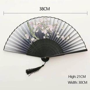 一条大河舞蹈扇子跳舞扇成人广场舞专用扇子双面真丝墨蓝渐变绸扇