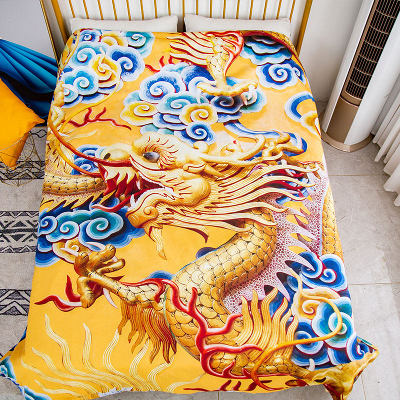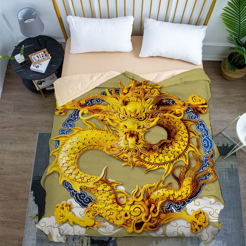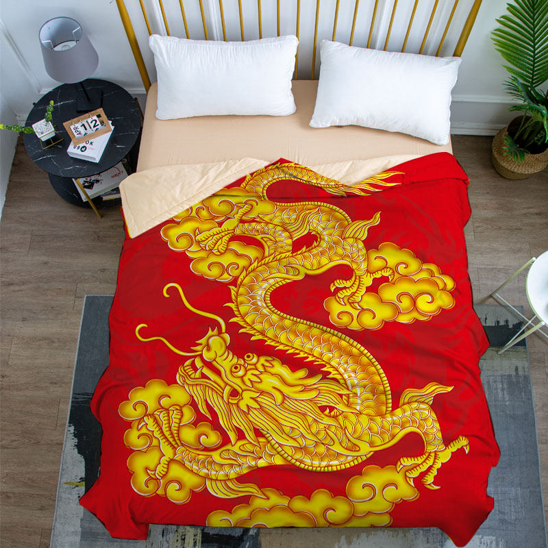 定制全棉空调被中国风薄盖被学生宿舍国潮龙图腾夏凉被单双人纯棉
