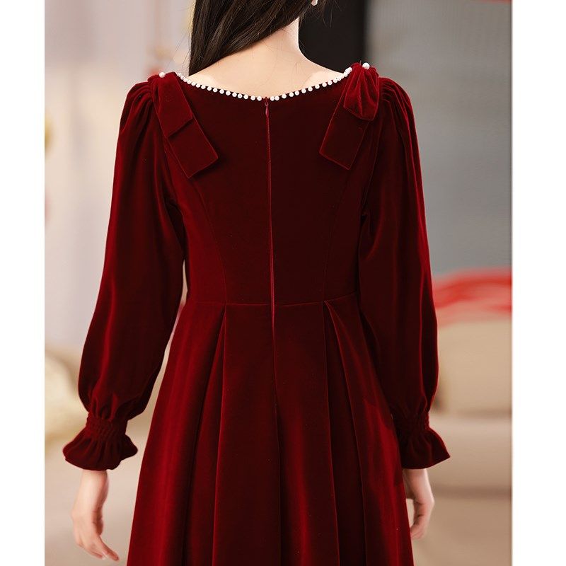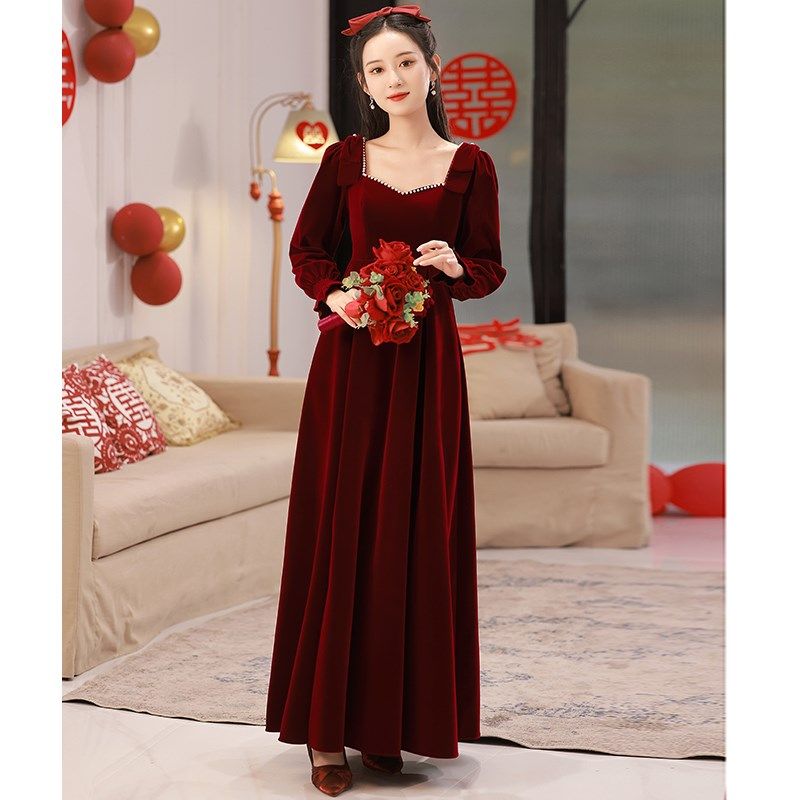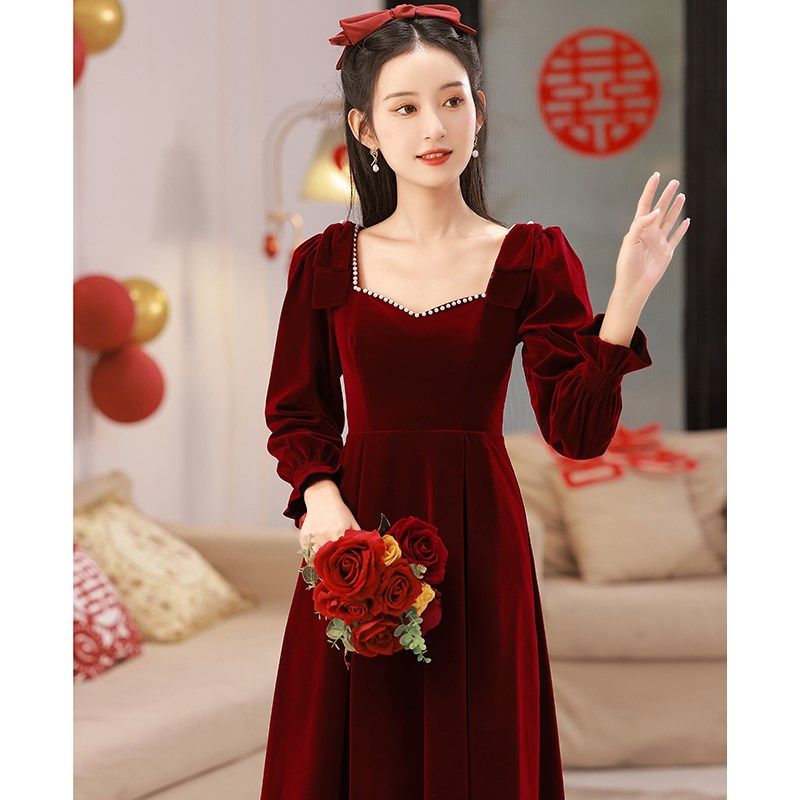 衣裙结婚回门礼色大连遮 酒红服订婚码 速发孕妇敬酒服新娘冬季 长袖