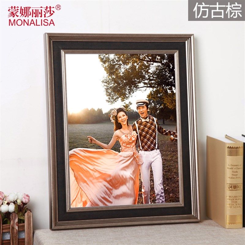 复古实木相框简约现代怀旧摆台6寸8k12寸画框装 裱小摆件定制美式