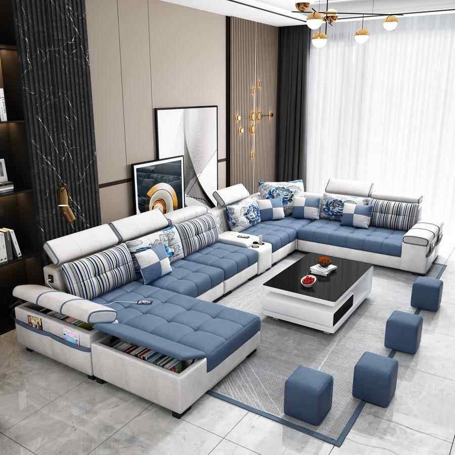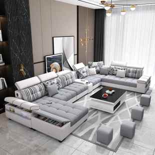 布艺沙发客厅简约现代2025新款 大户型北欧科技布沙发组合家具套装