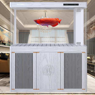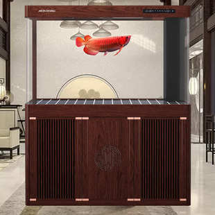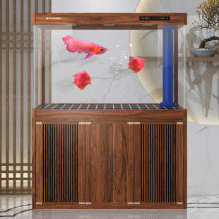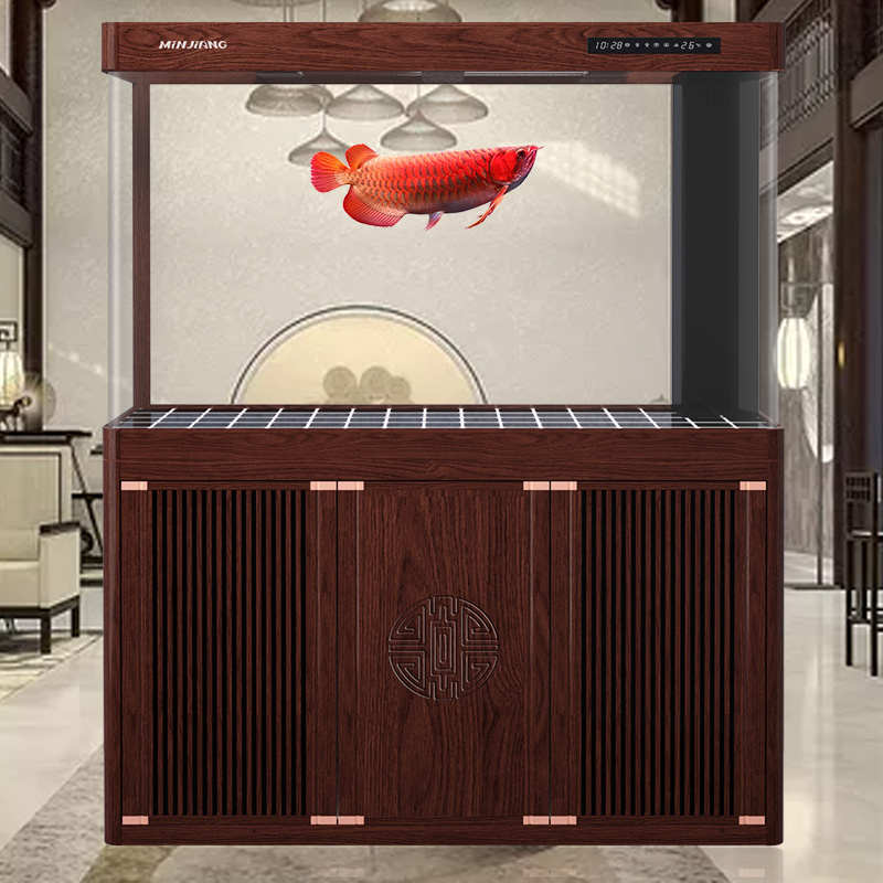 闽江大型鱼缸客厅家用落地水族箱热弯弧形新中式 免换水底滤龙鱼缸