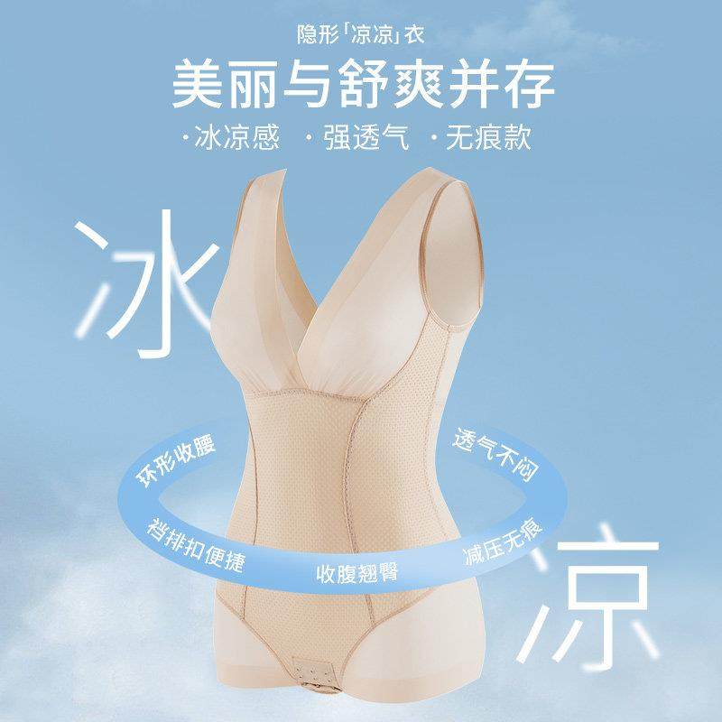 婷美蜂巢超薄塑身连体衣收腹提臀收小肚子塑形夏季 凉感透气束身衣