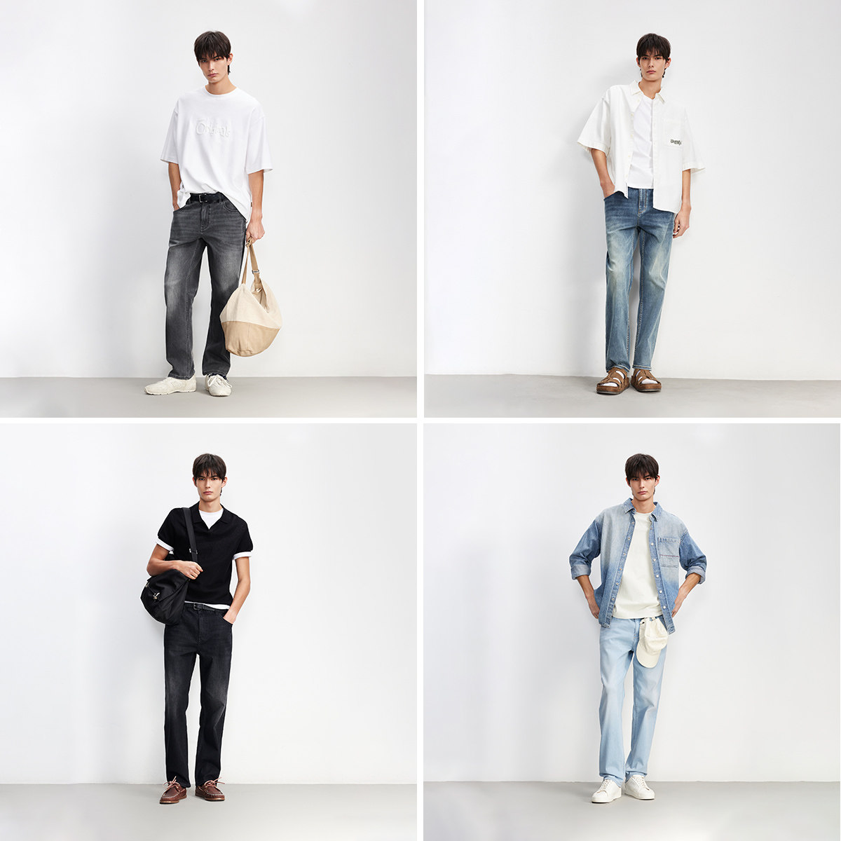 长裤 春秋复古中蓝水洗宽松直筒牛仔裤 903杰克琼斯男装 子 高弹