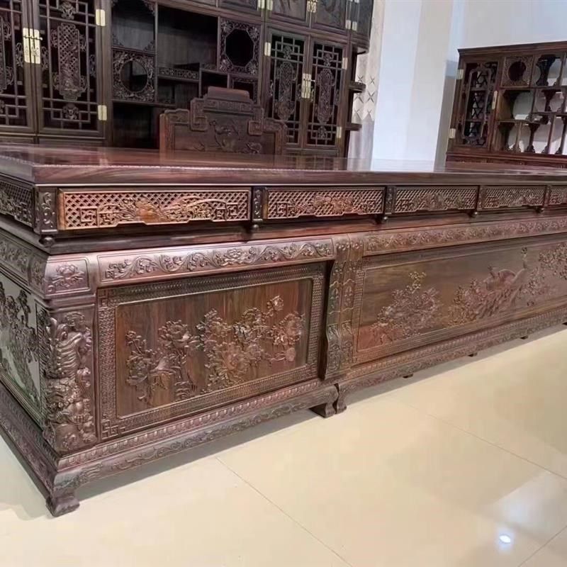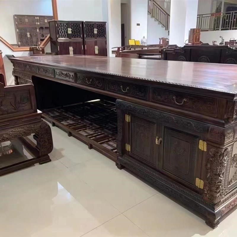 红木家具书桌菠萝格全实木金花梨原木办公老板桌写字台电脑桌家用