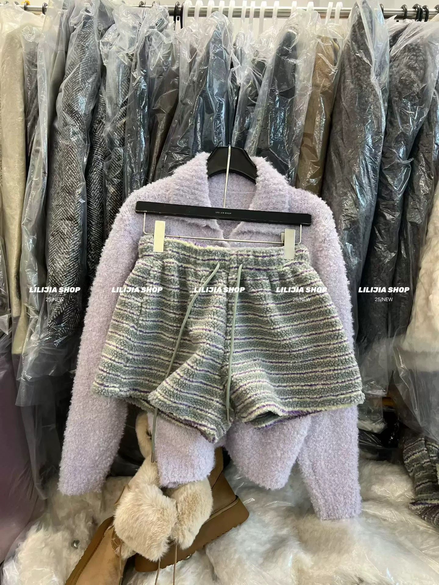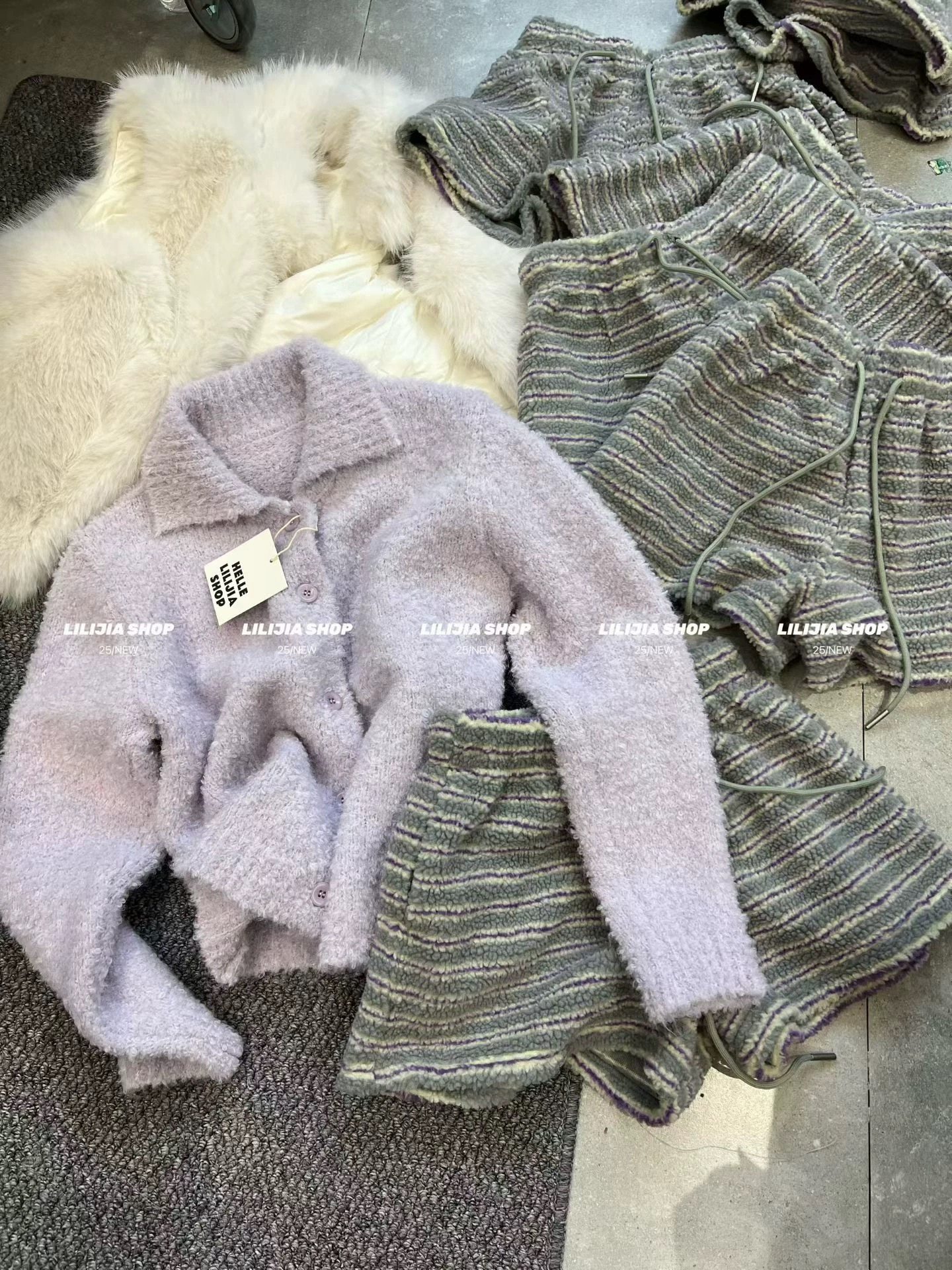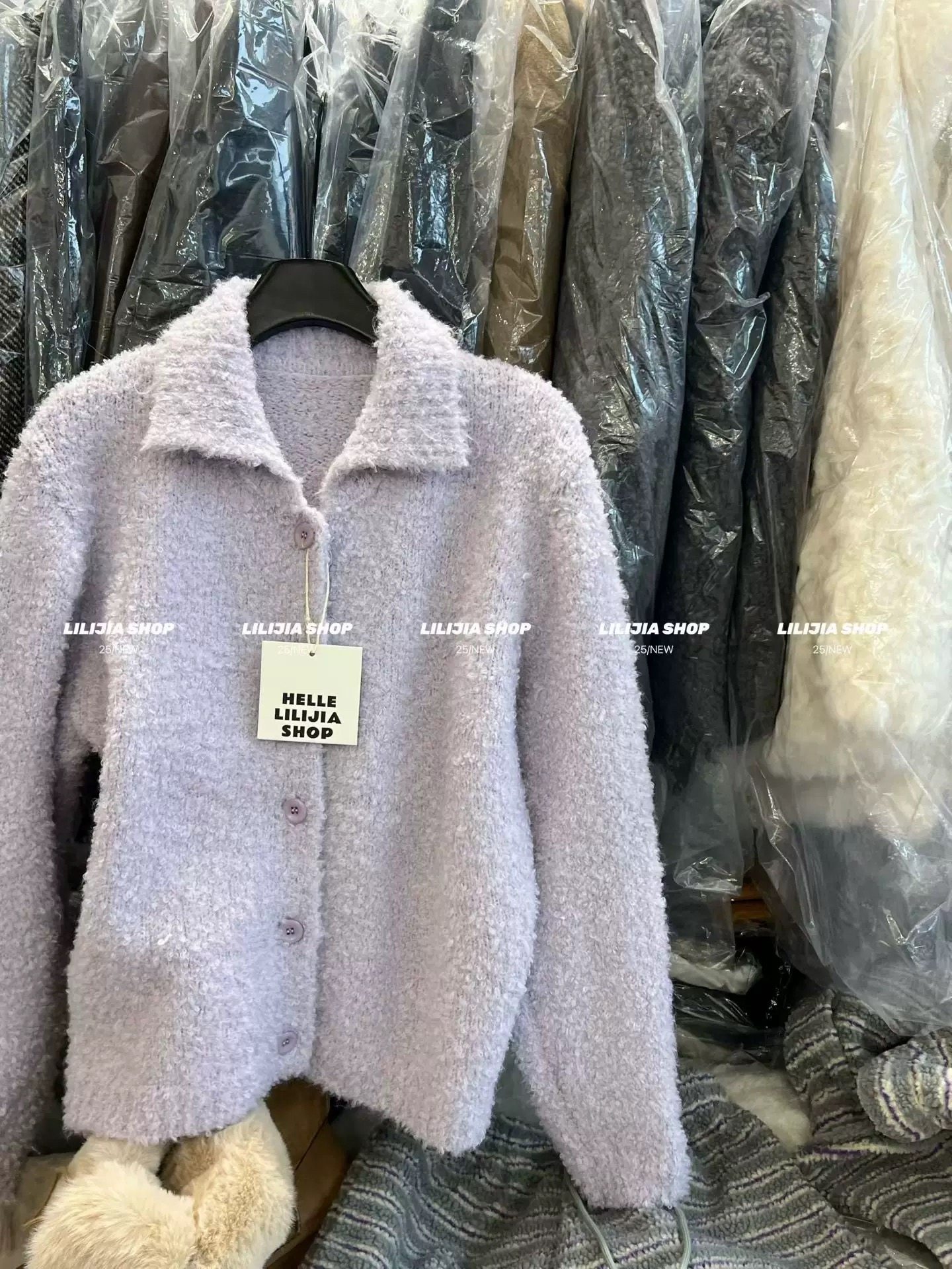 半高领设计感针织开衫 新款 洋气紫色立领方扣毛衣女2025年春季 韩版