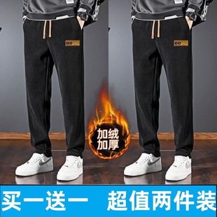 外穿气质卫裤 2025年男士 加绒弹力百搭休闲裤 直筒松紧裤 秋冬厚款