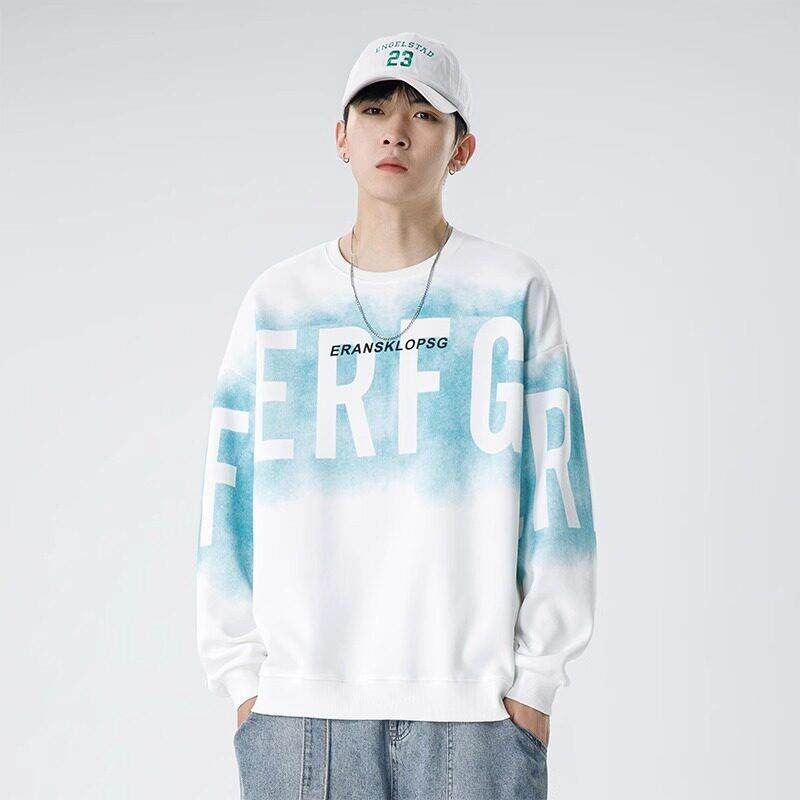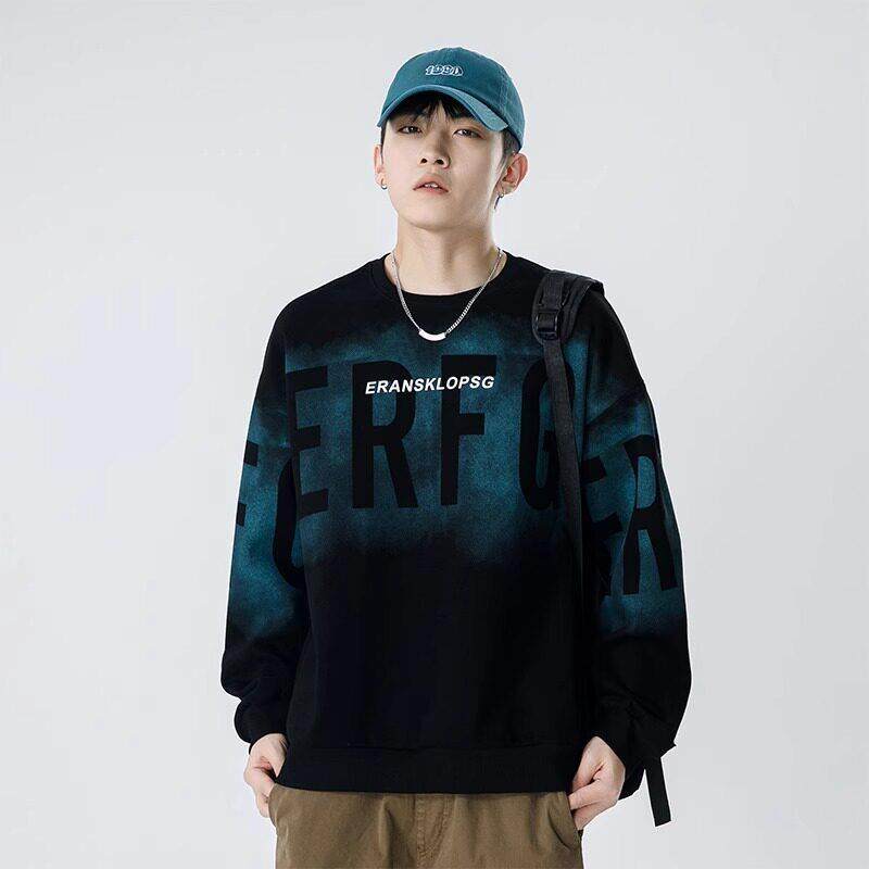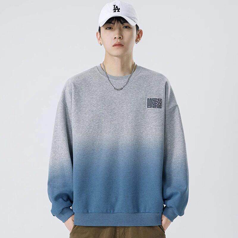 卫衣圆领松弛感纯色百搭打底衫 秋冬男士 潮牌高级感假两件拼接长袖