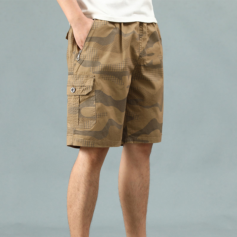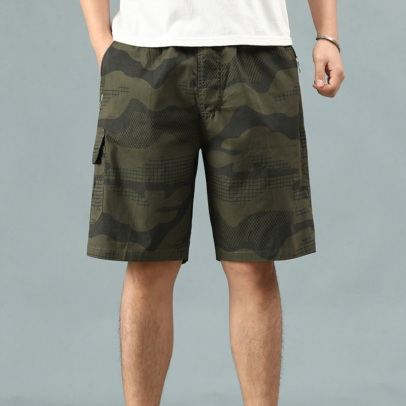 中老年纯棉大码 休闲迷彩短裤 五分裤 男爸爸薄款 衩 夏季 大裤 中年男士
